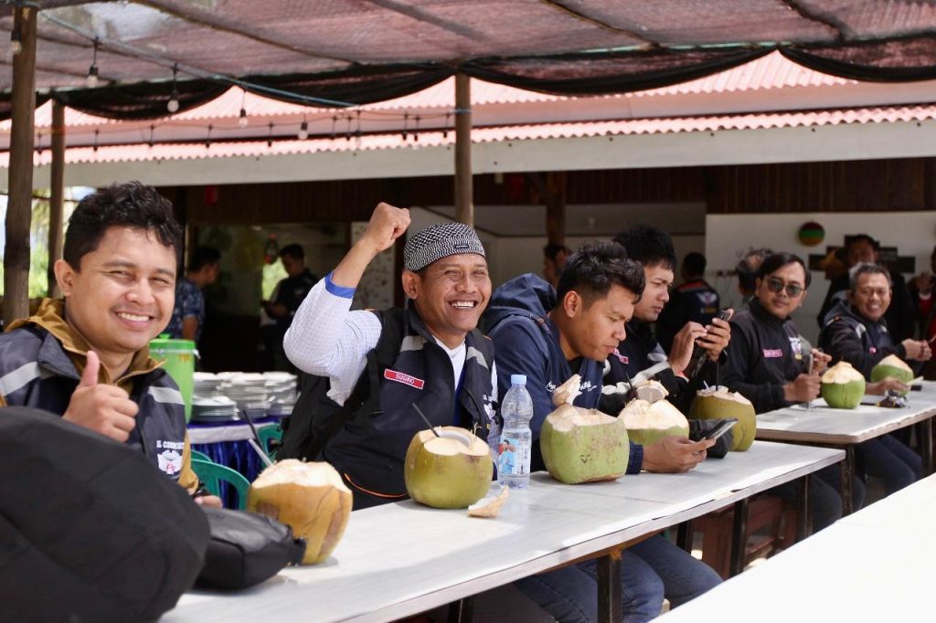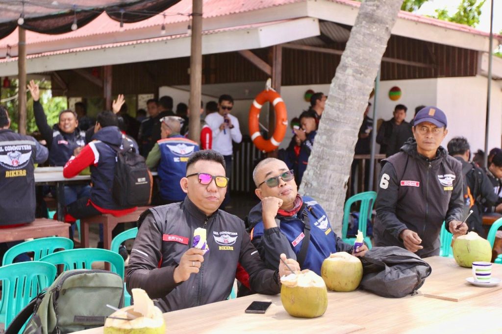 Rombongan RC Bikers disambut langsung oleh Agus Kusmawan, S.Par selaku perwakilan dari Management Alau Alau Boutique Resort Hotel. Diarahkan ke HELAU Café setelah motor masing-masing ditempatkan di area Parkir yang sudah disiapkan. Kelapa muda dan Ice Cream persembahan AICE sudah siap menunggu Rombongan untuk dinikmati bersama sama, setelah panas – panasan bermotor ria. Selanjutnya pembagian akomodasi kamar dan makan siang bersama-sama di HELAU Café.